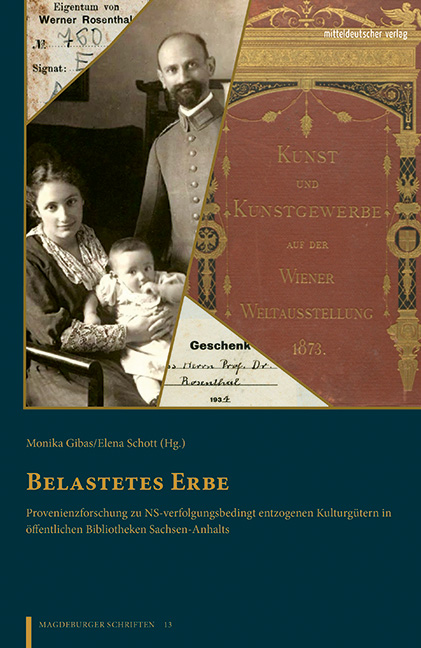 Der Band basiert auf einem mehrjährigen Forschungsvorhaben zu Provenienzen NS-verfolgungsbedingt entzogener Kulturgüter in öffentlichen Bibliotheken Sachsen-Anhalts. Daran beteiligten sich die Stadtbibliothek Magdeburg, die Wissenschaftliche Bibliothek der Anhaltischen Landesbücherei Dessau und die Neue Deutsche Rosenbibliothek des Europa-Rosariums Sangerhausen.